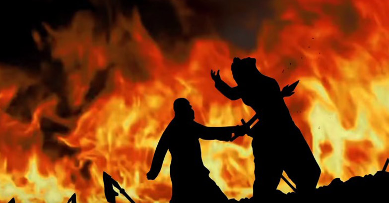 "First, I developed a frame but the director felt it was too low an angle to shoot on the screen. The next one too did not convince him since the slayer's face was obscure. Later, I composed a silhouette with fire and grey backdrop, and my art was ultimately replicated on the screen without any change."