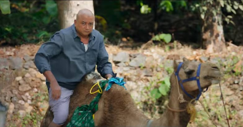 Jayaram plays the lead character – a nameless pet dealer who loves everything about life and animals. The film is all about this man's life and struggle with pet animals. The actor's makeover as the character is something amazing about the movie. The tonsured head, pot belly and a peculiar way of speaking gives him a unique appearance. He sells and rents every kind of animals – from dogs to macaws, donkeys, camels and what not! He has no family, no religion nor any of such 'identification' which society wants to tag him to. His world is full of love and animals. When the world around him vies for power and money, he only thinks of making lives better – of people around him and the animals.