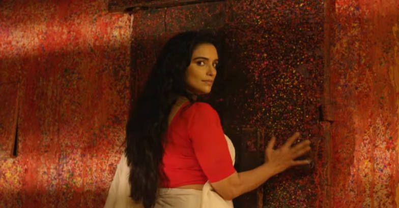 Shweta Menon plays the role of a tantalizing Subhadra who broke the norms of family in her youth.