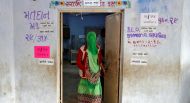 Congress leader Arjun Modhwadiya shows his inked finger after casting vote in a polling booth in Porbandar, GUjarat, on Saturday. PTI