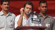 Congress vice-president Rahul Gandhi meets people during a public meeting in Gujarat's Anand on Saturday. PTI