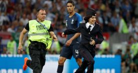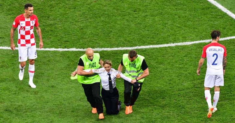 The Pussy Riot punk band, whose members were jailed for staging a protest against Russian president Vladimir Putin in a church, said on social media that they were responsible for the pitch invasion.