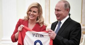 At a Kremlin meeting, Putin congratulated the Croatian president on the national team's performance.