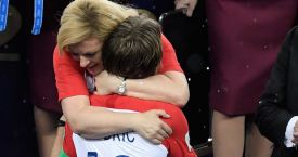 Croatian president Kolinda Grabar-Kitarovic gave hugs to players from both sides and shared a lighter moment with France president Macron.