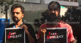 Sexy Durga director Sanal Kumar Sasidharan and actor Kannan Nayar staged a protest outside the main venue of IFFI.