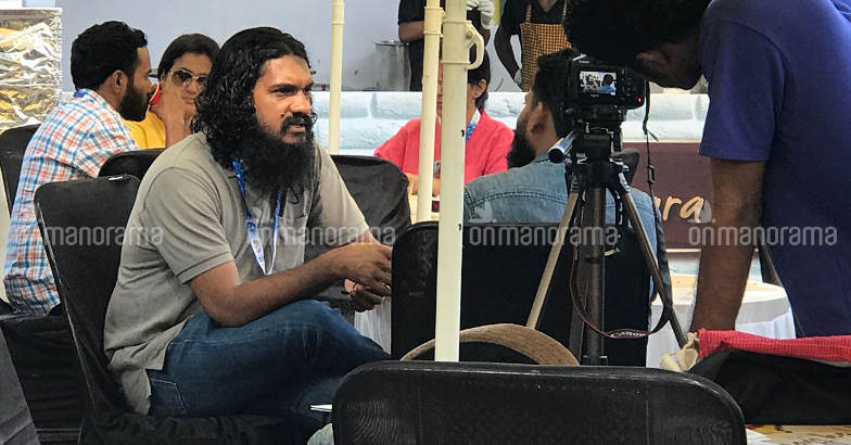 Sanal and Kannan stood outside Inox Complex, the main venue of the festival, holding a poster that read "Save Democracy", designed similar to his movie posters.