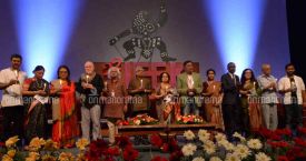 Parvathy, who received the Golden Peacock award and Mahesh Narayan, who received the Special Jury Award, were honored at the festival.
