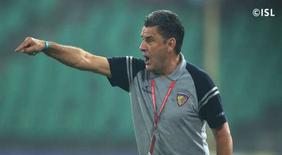 Chennaiyin FC head coach John Gregory celebrates with players after their win over FC Goa. Photo: ISL