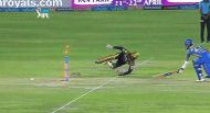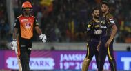 Sunrisers Hyderabad batsman Carlos Brathwaite plays a shot against Chennai Super Kings during the IPL 2018 final. PTI