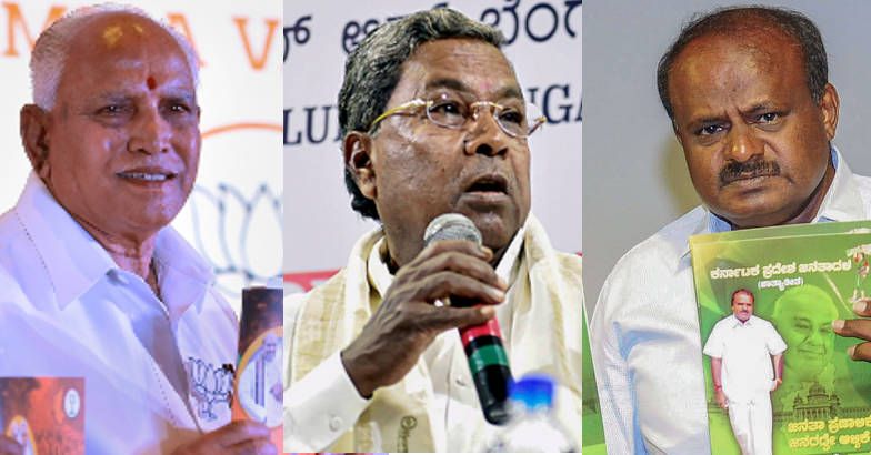 (From left to right) BJP's B S Yeddyurappa, Congress' Siddaramaiah and H D Kumarswamy of JD(S).