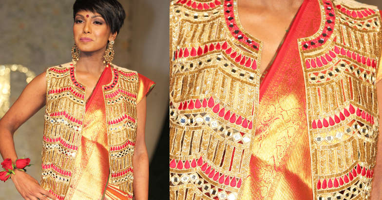 Pick a heavily embroidered jacket and team it with a plain saree or a collared jacket like the Victorian ruffled high collar style to dazzle in the traditional attire.