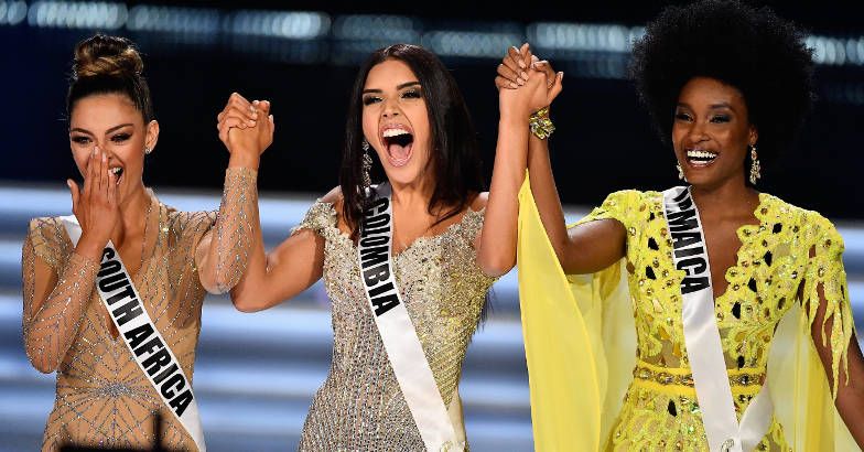 Miss South Africa 2017 Demi-Leigh Nel-Peters, Miss Venezuela 2017 Keysi Sayago, Miss Thailand 2017 Maria Poonlertlarp, Miss Jamaica 2017 Davina Bennett, and Miss Colombia 2017 Laura Gonzalez.