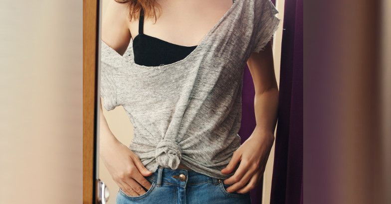 4. Wear a sensual stylish bra under your semi-sheer baggie top. The bra adds extra color and style to otherwise basic outfit. You can also flaunt a cage bra with neck detailing or even a bralette.