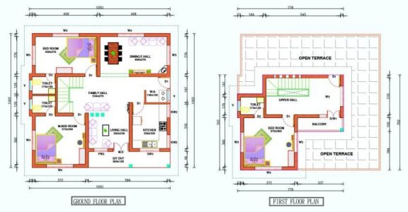 This amazing abode has living and dining areas, kitchen with work area and two bedrooms on the ground floor while there is a small hall, a bedroom, balcony and an open terrace in the upper storey. The house is designed in an area of 1500 sqft. The interiors, meanwhile, have been designed in the open style which makes the spaces look incredibly vaster.