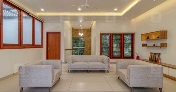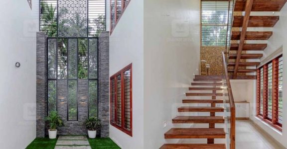 Prashant Menon, an expatriate, is ecstatic about his brand new house at his hometown in Kondotty, Malappuram, Kerala. As the family is settled abroad, they wanted a house which is easy to maintain. They preferred more common spaces that are vaster and spacious and less bedrooms as friends and relatives often visit them when the family is here for the holidays.