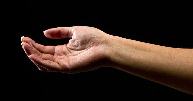 The palm-up gesture is also used as a submissive, non-threatening gesture – whether it’s the pleading, one-upturned-palm of beggars, or the two-palm version favoured by preachers reaching out to beseech divine assistance.