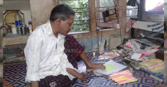 Anil mastered electrical works and set up a small-scale electronics repairing workshop at home as his passion for physics and the proficiency of operating things using legs became handy. He also learned to make paper-pens and sold them to nearby schools and offices. He also trained himself in writing with his left leg so as to benefit his long-term ambition of higher education. Finally, when he turned 39, the real-life warrior signed up for higher secondary equivalence course, offered by the state literacy mission. His struggles yielded good outcome, as he gained an exceptional score which was above ninety percent.