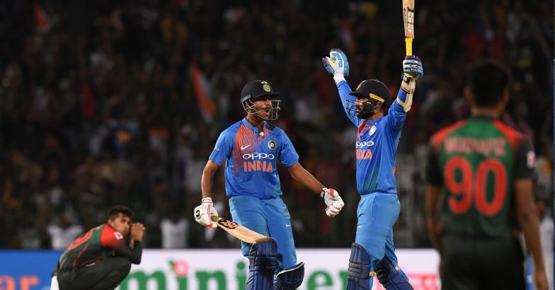 As the ball soared over the fence at extra cover, Indian players rushed to the ground to hug Dinesh Karthik, who had achieved the stupendous task of scoring the maximum possible runs off the last ball of the match to clinch a near impossible victory. India needed 34 runs off the last two overs against Bangladesh in the final of the Nidahas Trophy tri-series T20 when Karthik strode to the wicket. He smashed 22 runs off the penultimate over which brought the requirement to 12 from the last. Soumya Sarkar, who was given the difficult task of bowling the last over, gave away only seven runs from the first five balls, thus bringing his side to the doorsteps of a win. The trophy appeared well within the grasp of the Bangla Tigers when an ultra cool Karthik decided to have the last laugh by hitting a ball pitched on the good length spot outside the off stump for a six.