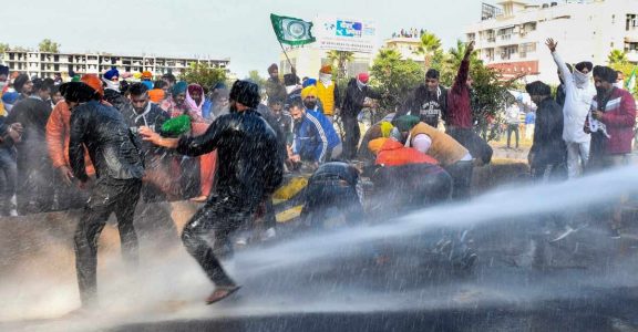 At the Tigri border, security personnel used water cannons to disperse farmers trying to gain entry to Delhi.