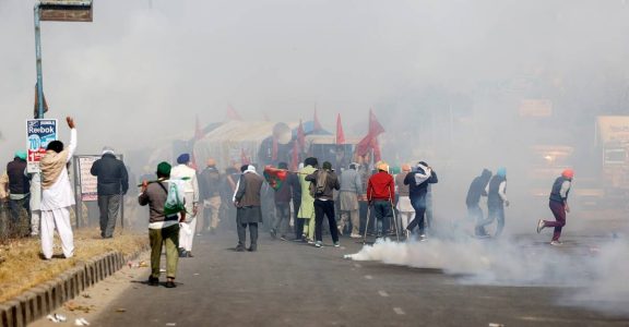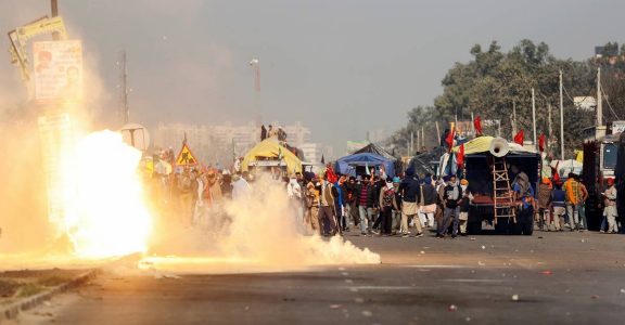 Plumes of smoke were seen as security personnel used multiple rounds of tear gas to disperse the farmers at the Singhu border.