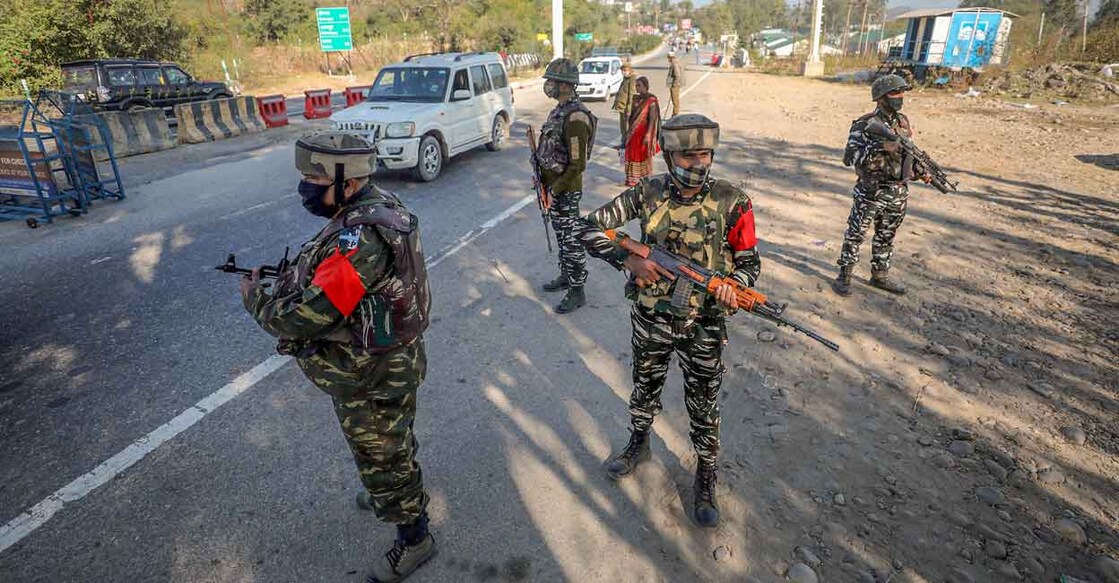 Security forces recovered a cache of weapons from the site, including an AK series rifle, three INSAS rifles, a self-loading rifle (SLR), eight country-made firearms, and a pistol, according to officials.