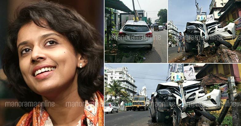 Malayalam playback singer Sithara Krishnakumar met with an accident after her car hit a telephone post on Friday in Thrissur.