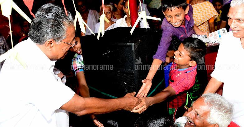 Chief minister Pinarayi Vijayan greets children during a function. File photo