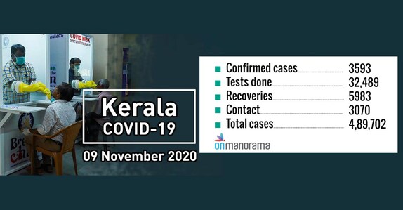 Thiruvananthapuram: Kerala reported 3,593 new coronavirus positive cases after 32,489 tests on Monday. The state also registered 5,983 recoveries in the last 24 hours, the Health department informed in a press statement.