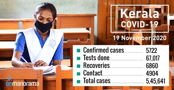 Thiruvananthapuram: Kerala's COVID-19 case count reached 5,45,641 on Thursday, with the state reporting 5,722 fresh cases. The state also registered 6,860 recoveries since Wednesday.