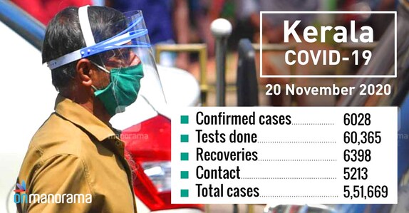 Thiruvananthapuram: Kerala's COVID-19 case count reached 5,51,669 on Friday, with the state reporting 6,028 fresh cases. The state also registered 6,398 recoveries since Thursday.