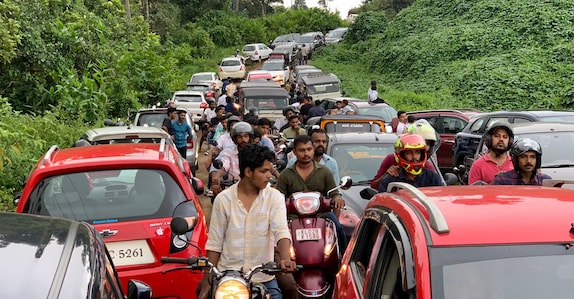 Even two-wheelers are stuck in traffic for hours at Kakkadampoyil. Photo: Special arrangement