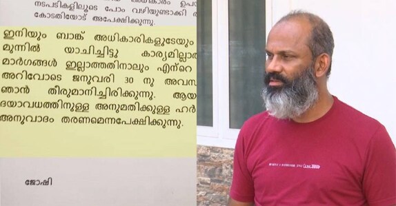 Thrissur: A 53-year-old man who invested more than Rs 70 lakh in the scam-tainted Karuvannur Cooperative Bank has filed a petition to the Kerala Chief Minister and Chief Justice seeking sanction for mercy killing. Joshi, a native of Mapranam is unable to find money for his treatment for various ailments despite having a huge bank deposit.