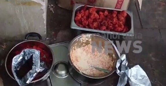 The food safety department officials seized stale food from the restaurant's kitchen and rooms of the workers.