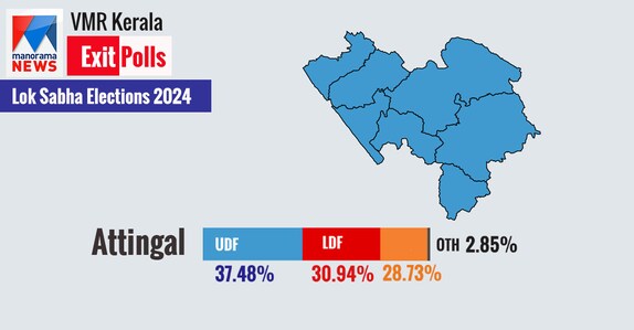 Attingal: Sitting MP Adoor Prakash is expected to win in Attingal as per the Manorama News-VMR exit poll. Though there is a slight decrease in the votes received compared to the last election, he expected to retain the seat.