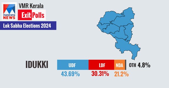 Idukki: The ruling Left Democratic Front (LDF) and the opposition United Democratic Front stares at the prospect of a huge drain in vote share in the hilly Lok Sabha constituency of Idukki, as per the estimates of the ManoramaNews-VMR exit polls.