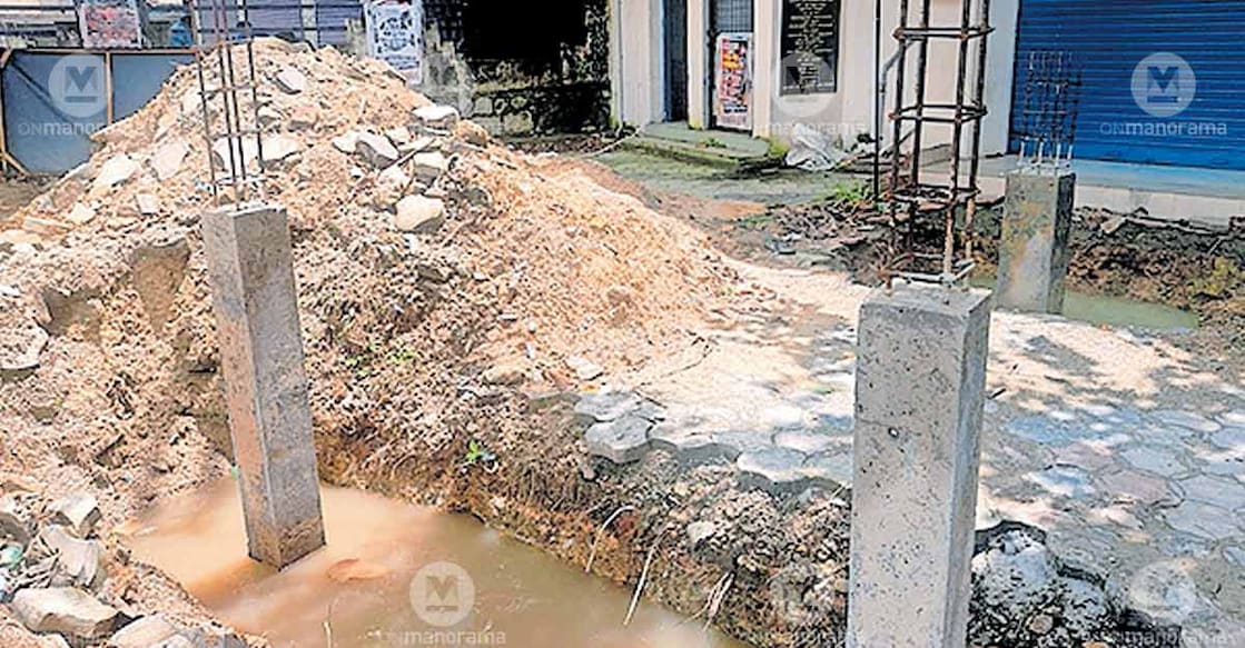 The project to build a Gandhi statue and a nearby park was envisaged as part of the beautification works of Nilamel junction. KSTP issued a stop memo to the panchayat officials alleging the statue is being built by encroaching the land owned by the public works department. Meanwhile, construction had already started, and concrete pillars were already built here.