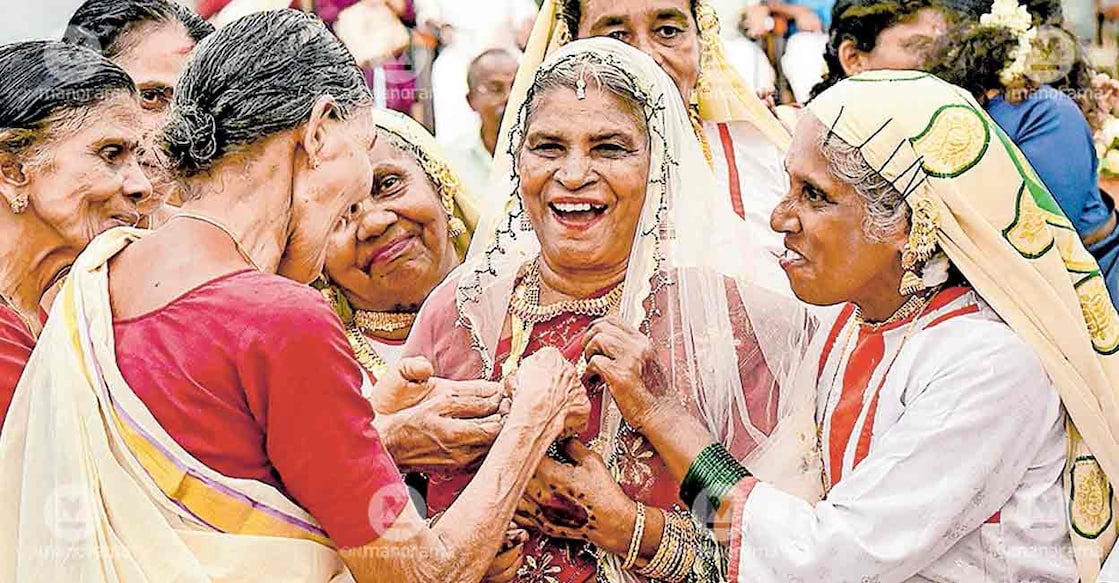 Kozhikode: When 77-year-old Bhargavi, adorned in full bridal attire and ornaments, took the stage with the demure grace of a Manavatti (soon-to-be-married bride), 79-year-old Meenakshi, acting as her maid, could hardly contain her excitement. Checking the shine of Bhargavi’s ornaments and sharing playful jokes, the duo seemed to take everyone back to their youth.