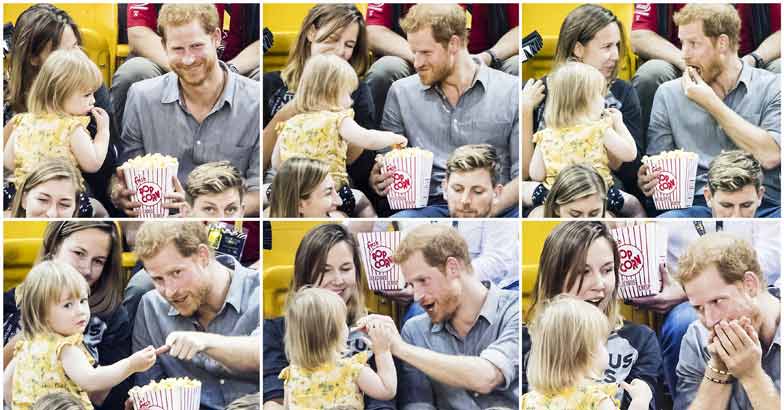 In a video which went viral, a little girl was spotted stealing prince Harry's buttery popcorn during a recent volleyball game at the Invictus Games in Toronto.