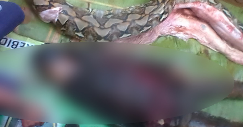 Hamka said villagers found the giant serpent lying about 30 metres from Tiba's sandals and machete, adding she was swallowed head first and her body was found intact.