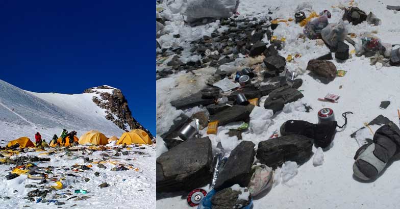 On the Tibet side of the Himalayan mountain, they are required to bring down the same amount and are fined $100 per kilogramme if they don't.