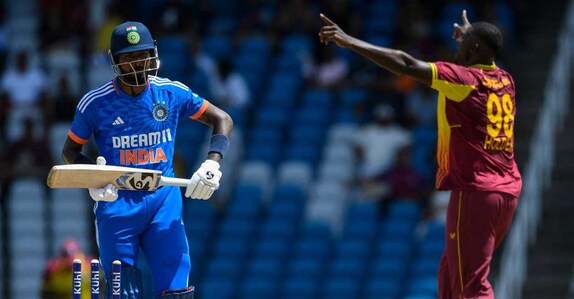 Hardik introduced spin in the fourth over and Brandon King (28 off 19) made his intentions clear with an inside out six over cover off Axar Patel.