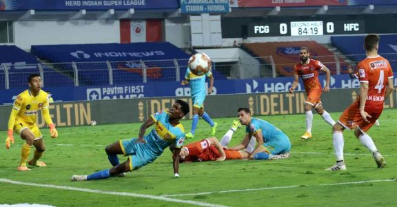 HFC made it difficult for Goa with incessant pressing all over the pitch and had a few chances in the opening minutes. What they lacked was the poacher’s instincts in the final third.