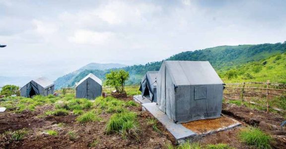 The 'two eyes' (frames) of Palakkayam Thattu offers vivid sights. Through the square shaped cement frame, the boundary of Kannur and beyond are visible. On one side there is Pythal hill and on the other side is the Valapattanam river besides which is the lush green forest of Coorg. The panoramic view through the square eyes gets embossed in the heart and never fades. The steps carved on the stones from there will take you to the tent camping spot towards the south. The tents are erected on a cemented platform safely within the fences. The tent camping has attracted travellers to Palakkayam |Thattu in manifold.