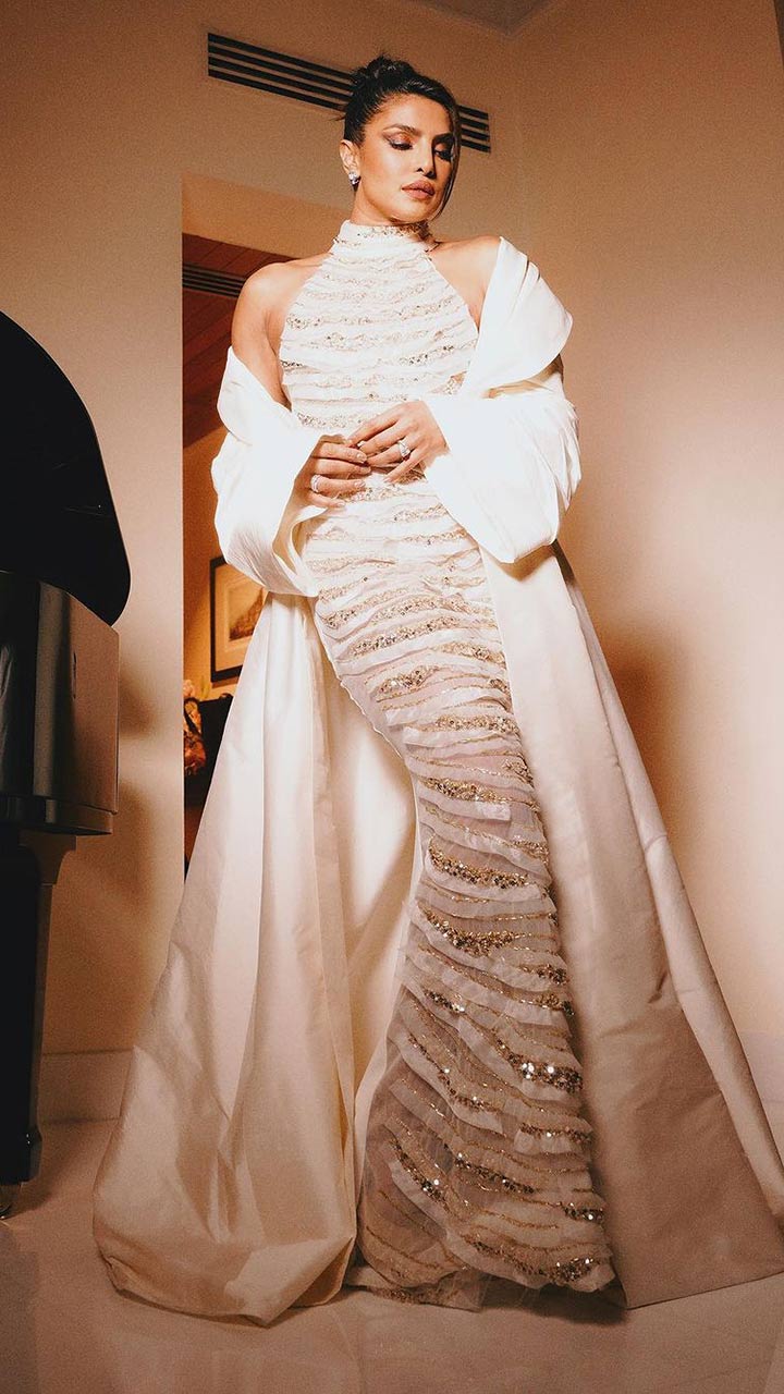 Priyanka Chopra looked super stylish as she wore a gold sequin figure-hugging dress