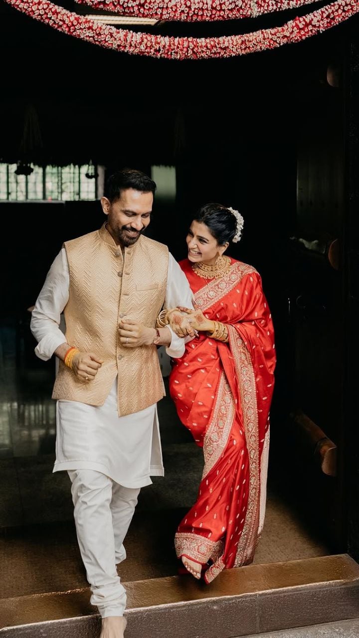 She shared a series of wedding photos online, offering a clear look at her engagement ring and sleek mangalsutra.